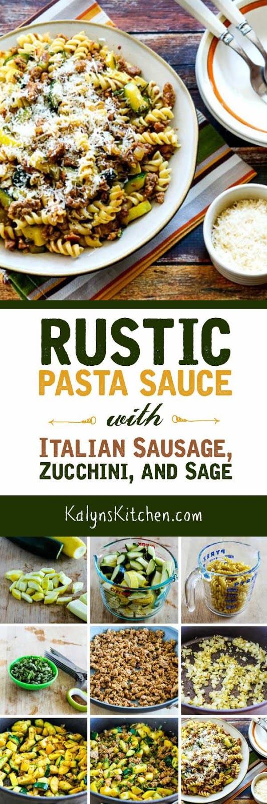 Rustic Pasta Sauce with Italian Sausage, Zucchini, and Sage is a delicious way to use up extra zucchini! [found on KalynsKitchen.com]