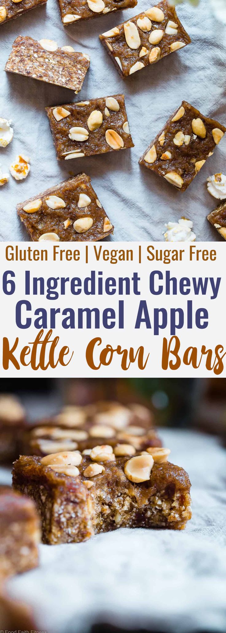 Salty Sweet Caramel Apple Kettle Corn Bars – Made with date caramel, dried apples and a punch of salty kettle corn, these easy, CHEWY, no-bake bars are addictingly salty-sweet! Vegan friendly and gluten and sugar free, but you would never know they’re better for you! | #Foodfaithfitness | #Glutenfree #Vegan #Healthy #Sugarfree #Dairyfree