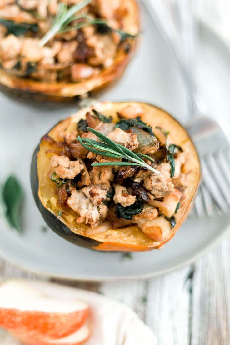 Healthy Recipes : Sausage and apple stuffed acorn squash