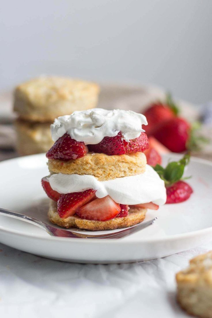 Healthy strawberry shortcake! Made with fresh fruit and real ingredients, this skinny strawberry shortcake is a guilt free dessert you can eat all summer long!
