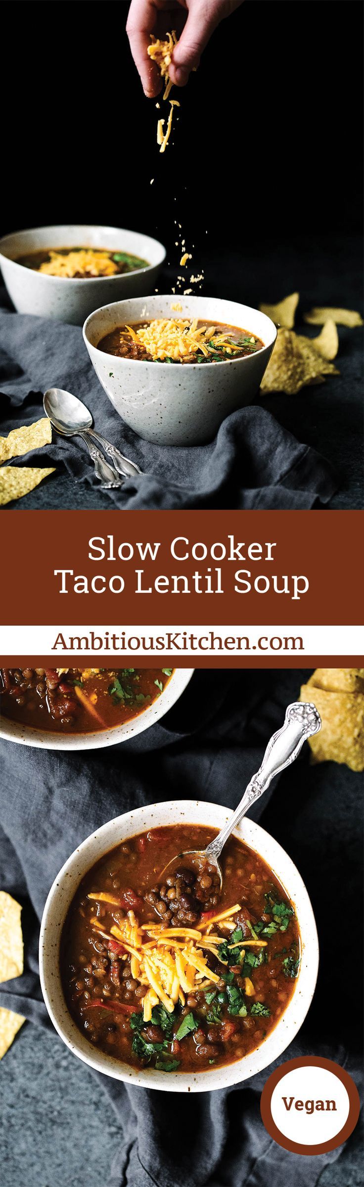 Healthy Recipes : Slow Cooker Taco Lentil Soup that’s both vegan and gluten free. You’ll love … October 12, 2017, 11:31 am 1.7k Views Healthy Recipes Illustration Description Slow Cooker Taco Lentil Soup that’s both vegan and gluten free. You’ll love this easy meal packed with plant-based protein! 19 shares