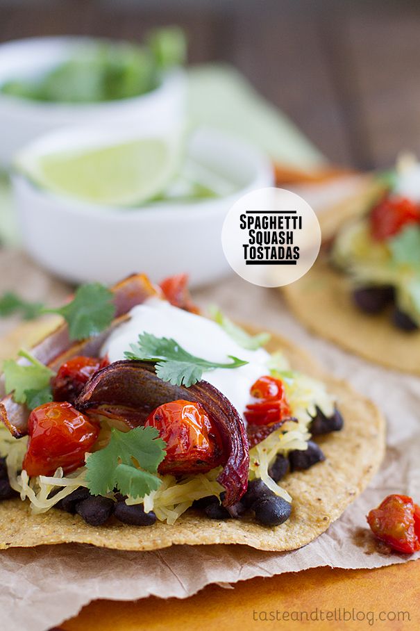 Healthy Recipes : Spaghetti Squash Tostadas October 4, 2019, 5:29 pm 1.6k Views Healthy Recipes Illustration Description Spaghetti Squash Tostadas- This vegetarian tostada is filled with roasted tomatoes and onions, spaghetti squash, and black beans. 19 shares