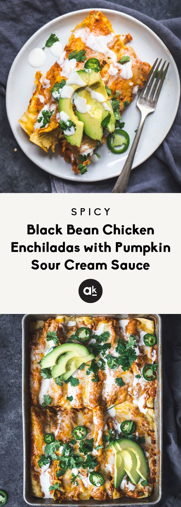 Healthy Recipes : Spicy Black Bean Chicken Enchiladas with Pumpkin Sour Cream Sauce