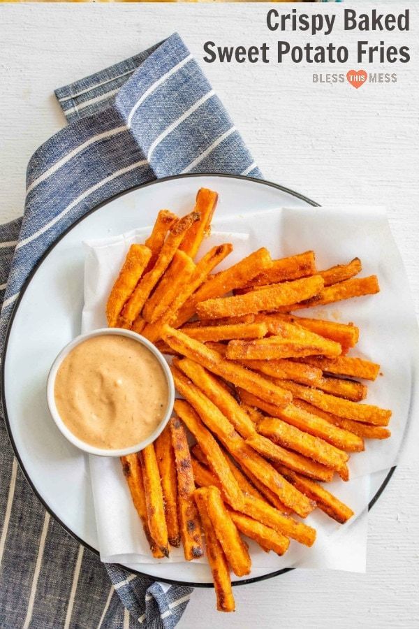 The BEST crispy homemade Sweet Potato Fries that are made with a secret ingredient, a perfect spice blend, and baked to crisp perfection. #sweetpotato #baked #fries