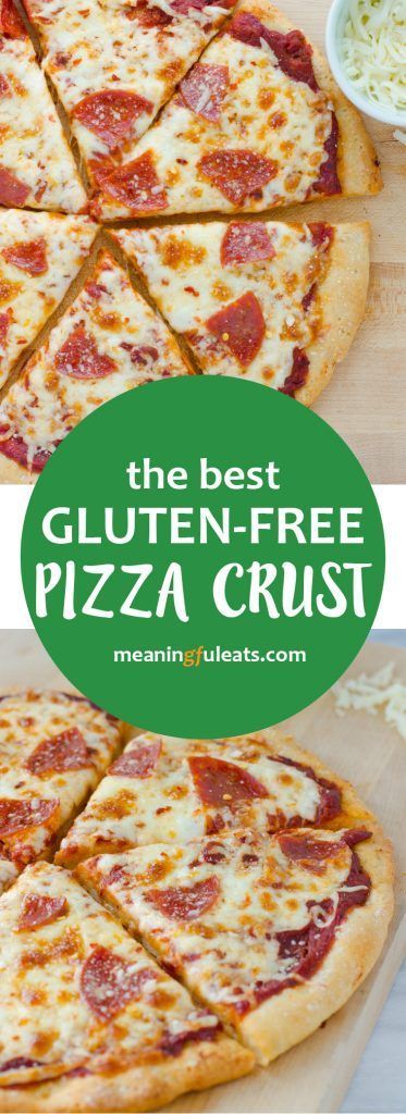 The Best Gluten-Free Pizza Crust! Easy to make and works with basically any gluten-free flour blend. Bakes up chewy and crispy! #glutenfree #pizza #gfpizza #pizzacrust #meaningfuleats
