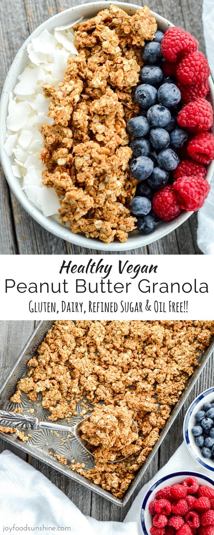 This Healthy Peanut Butter Granola is the perfect make-ahead breakfast recipe! With only 6 ingredients it's so easy to make! Gluten-free, dairy-free, refined sugar free, oil free and vegan!