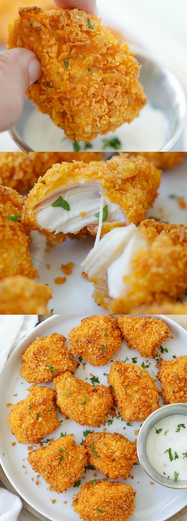 Healthy Recipes : Tortilla Chip-crusted Chicken Bites – coated with crispy tortilla chips and ba…