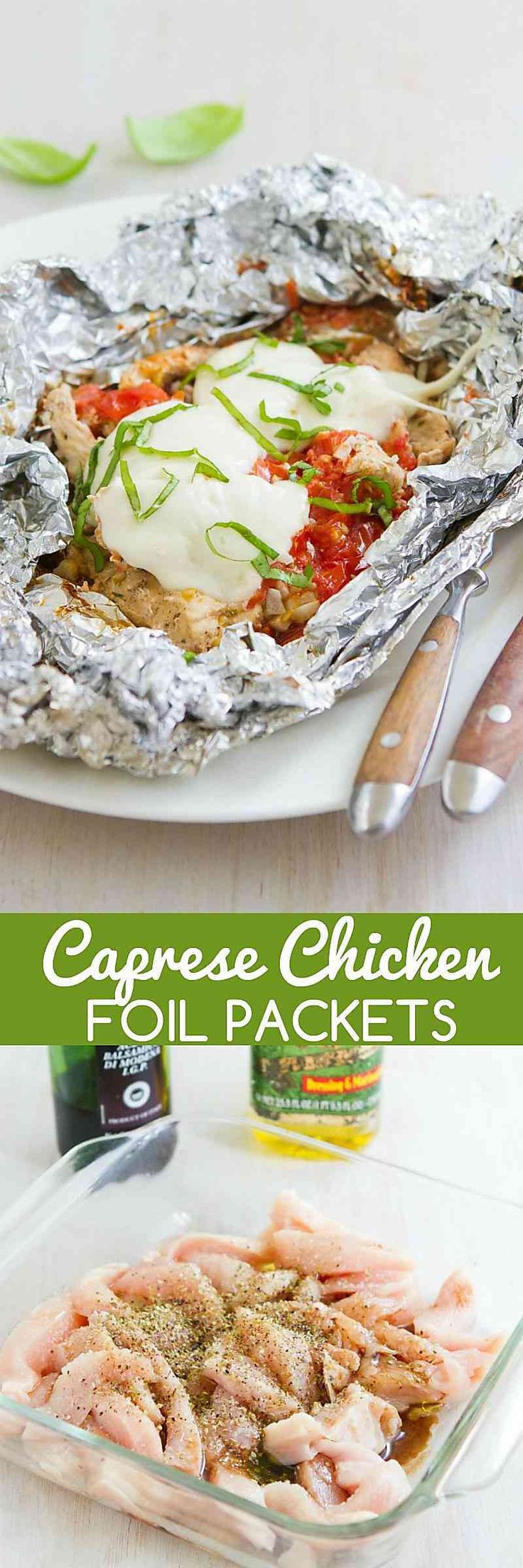 Healthy Recipes : Toss these Caprese Chicken Foil Packets in the oven or on the grill for an easy …