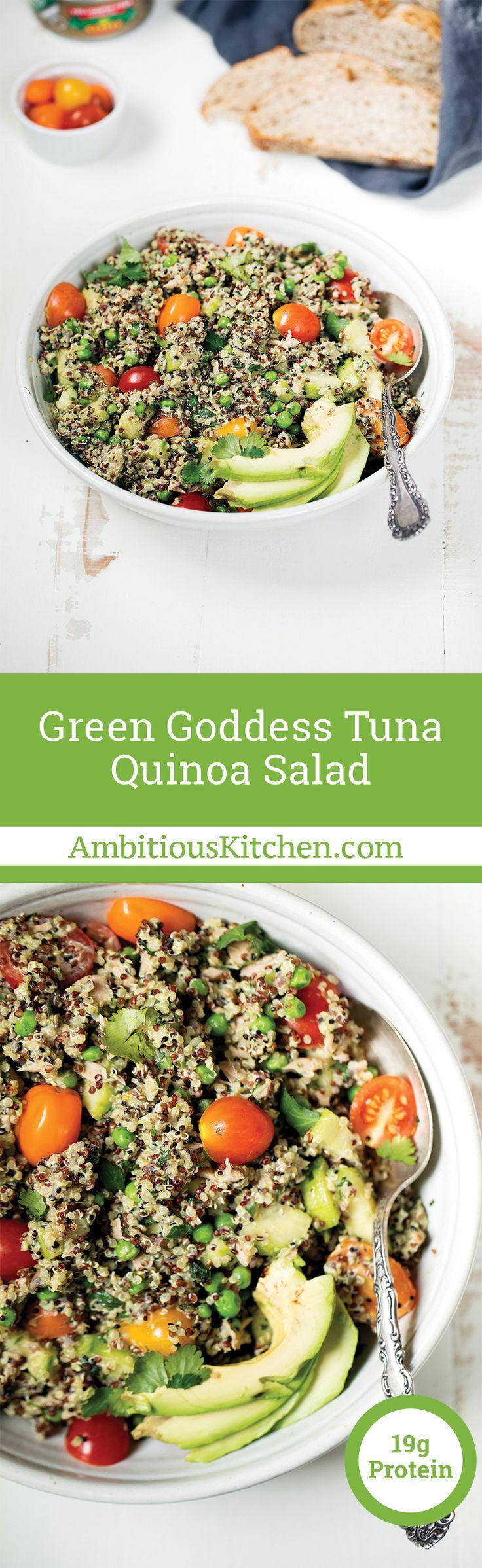 Healthy Recipes : Tuna quinoa salad packed with protein, fresh spring veggies and a green goddess … October 10, 2017, 11:08 am 1.7k Views Healthy Recipes Illustration Description Tuna quinoa salad packed with protein, fresh spring veggies and a green goddess avocado dressing. Delicious and so easy to make! 19 shares