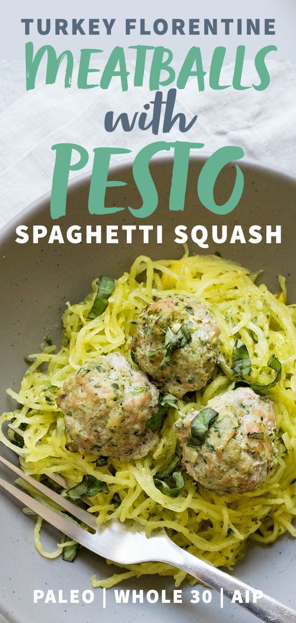 Healthy Recipes : Turkey Florentine Meatballs with Pesto Spaghetti Squash