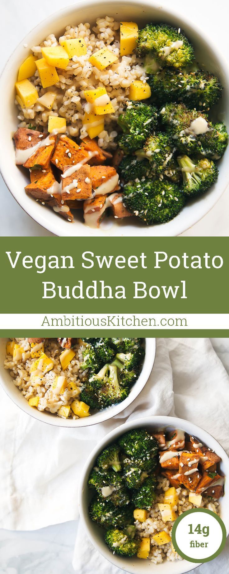 Healthy Recipes : Vegan Sweet Potato Buddha Bowls with Almond Butter Dressing