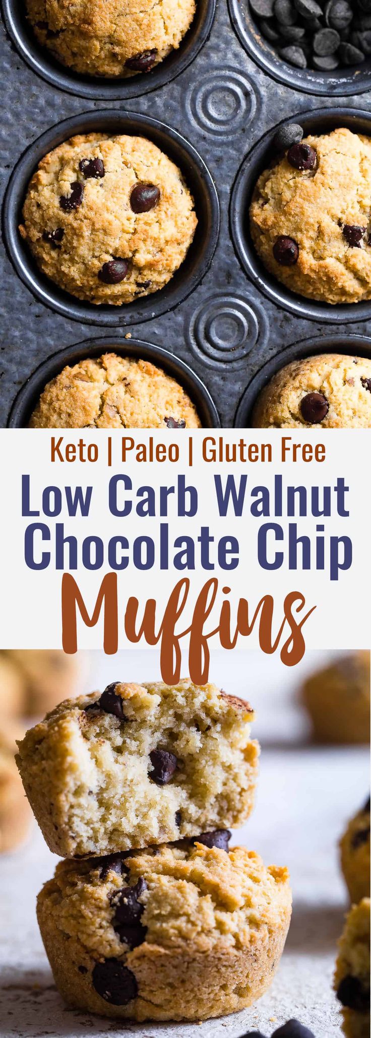 Walnut Chocolate Chip Keto Low Carb Muffins – These healthy, sugar free muffins are loaded with chocolate chips and black walnuts and are SO moist and fluffy you won’t believe they’re gluten free, keto AND paleo! | #Foodfaithfitness | #Keto #Lowcarb #Glutenfree #Paleo #Grainfree