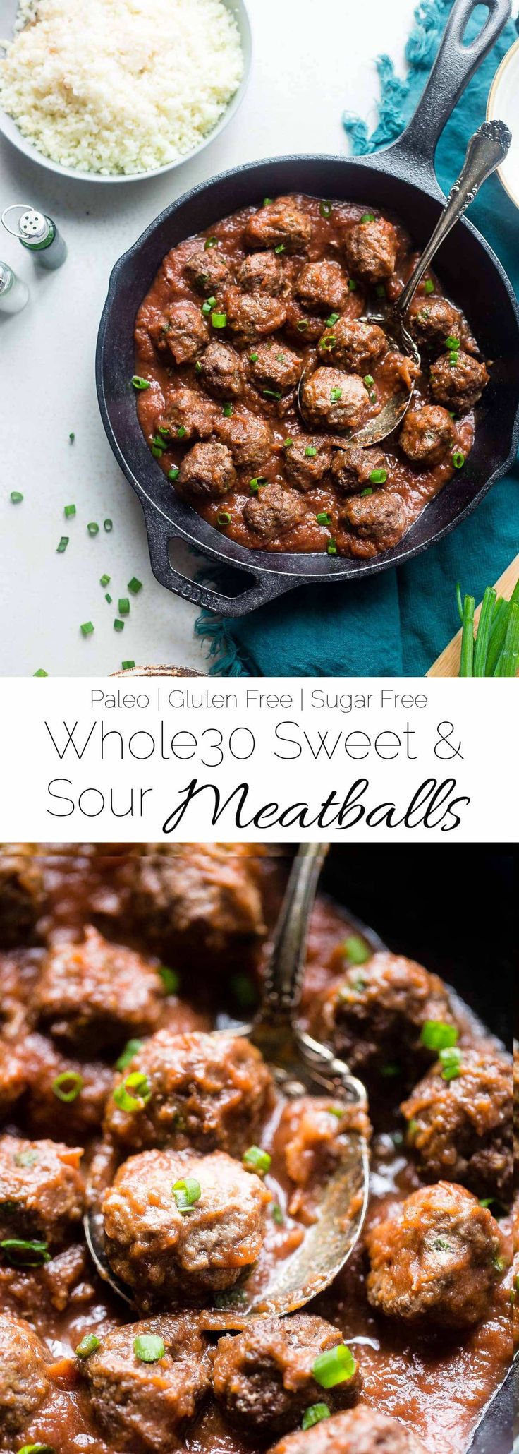 Whole30 Sweet and Sour Meatballs – These easy paleo meatballs are a healthy remake of a classic recipe that is gluten free and whole30 complaint! They’re a weeknight meal that everyone will love! | Foodfaithfitness.com | Taylor | Food Faith Fitness – Healthy Gluten Free Recipes & Fitness Tips