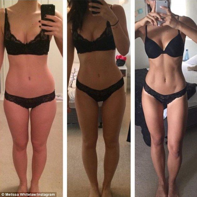 Transformation: Taking to Instagram over the weekend, the 22-year-old brunette beauty shared three snaps of herself in black lingerie, documenting the changes in her figure over some time