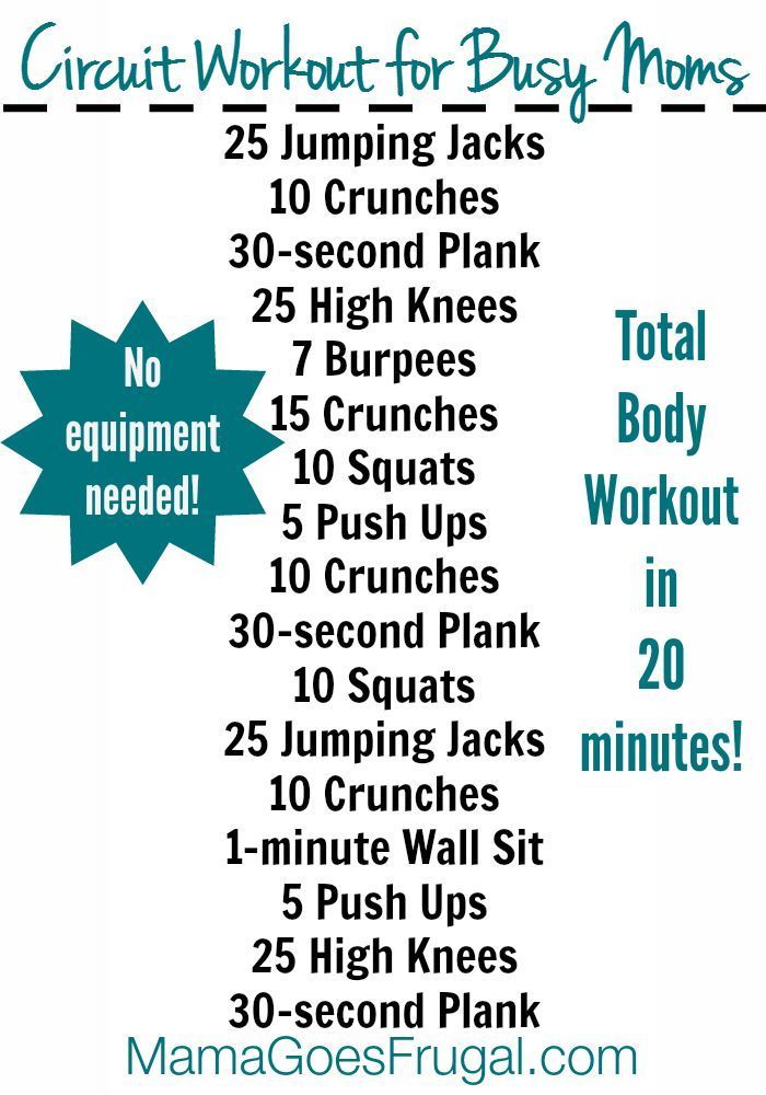 Motivation : 20-Minute at Home Workout for Busy Moms {with free printable} June 18, 2019, 6:05 am 2.3k Views Fitness and body Motivation Before and After Description Even busy moms have time for this 20 minute at home circuit workout. www.mamagoesfruga… 19 shares