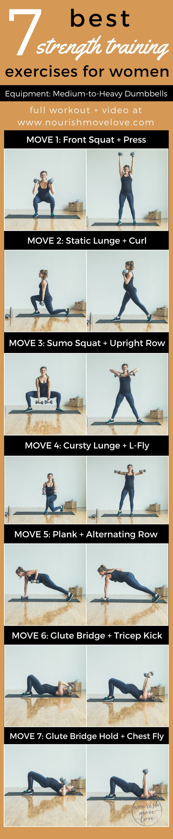 A complete 30-minute workout challenge routine made up of the 7 best strength training exercises for women. Target multiple muscle groups, increase strength, and build muscle. Perfect for recovering from injury, prenatal workouts/pregnant/pregnancy workouts, and mommy workouts. Squat, press, lunge, curl, row, fly, glute bridge, and tricep kick your way to a new body. Perfect for getting lean and toned beach body for this summer!