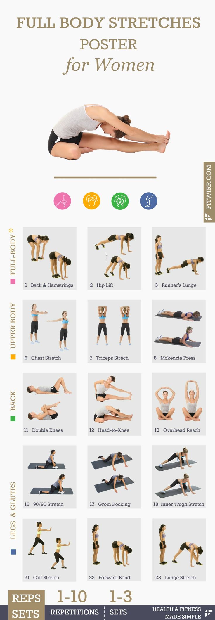 Workout : Full-body stretches poster for women. #stretches #flexibilityexercises… June 11, 2017, 11:05 pm 2.4k Views Fitness and Workout Plans Illustration Description Full-body stretches poster for women. #stretches #flexibilityexercises 19 shares