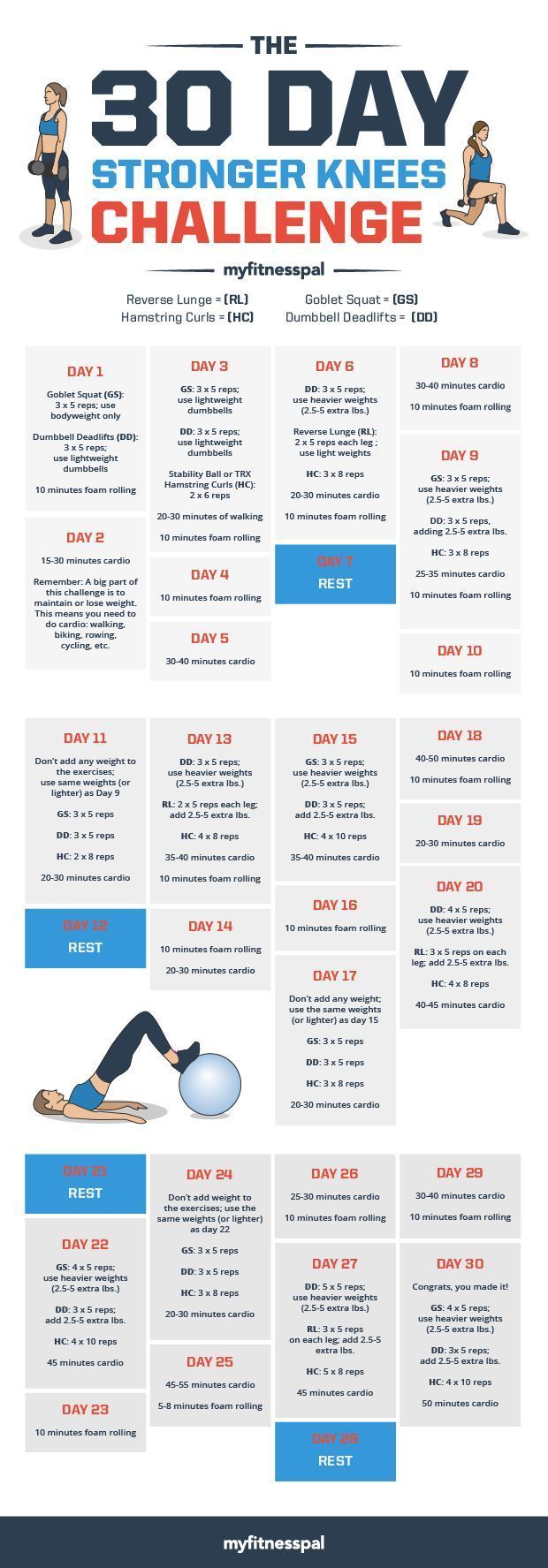 Do you suffer from chronic knee pain? This month, take The 30-Day Stronger Knees Challenge to build joint strength, improve mobility, and prevent injury. Your knees will thank you! #myfitnesspal #strength #training
