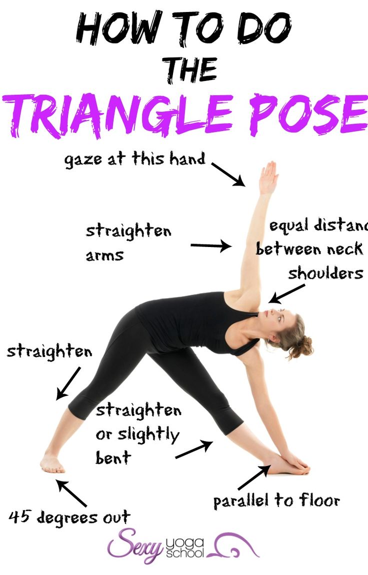 Triangle Pose (Utthita Trikonasana) is a basic pose taught in beginner classes since it is easy to do. Aimed at stretching the torso and mobilizing the hips