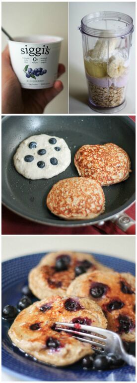 Workouts to Lose Weight Fast : Healthy Pancakes made in the blender with oatmeal, yogurt, banana and an egg! Ea…