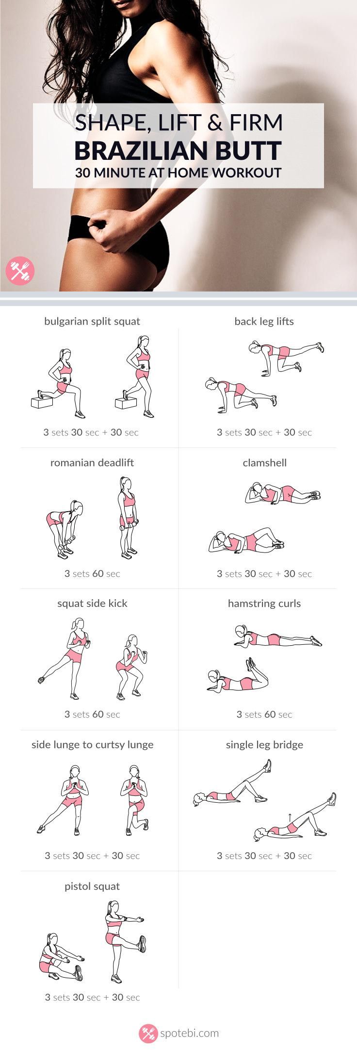 Want to know the secret to a perfect booty? Try this 30 minute sculpting and lifting Brazilian butt workout. Shape and firm your glutes and thighs fast! www.spotebi.com/…